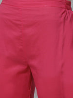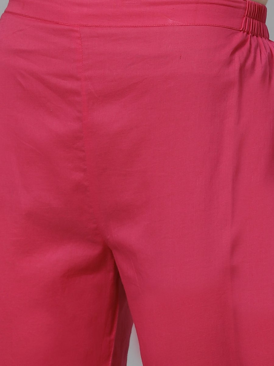 Pink solid trousers, has partially elasticated waistband, slip-on closure