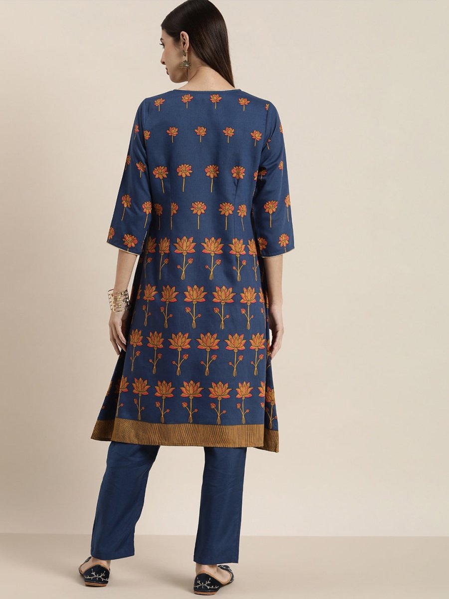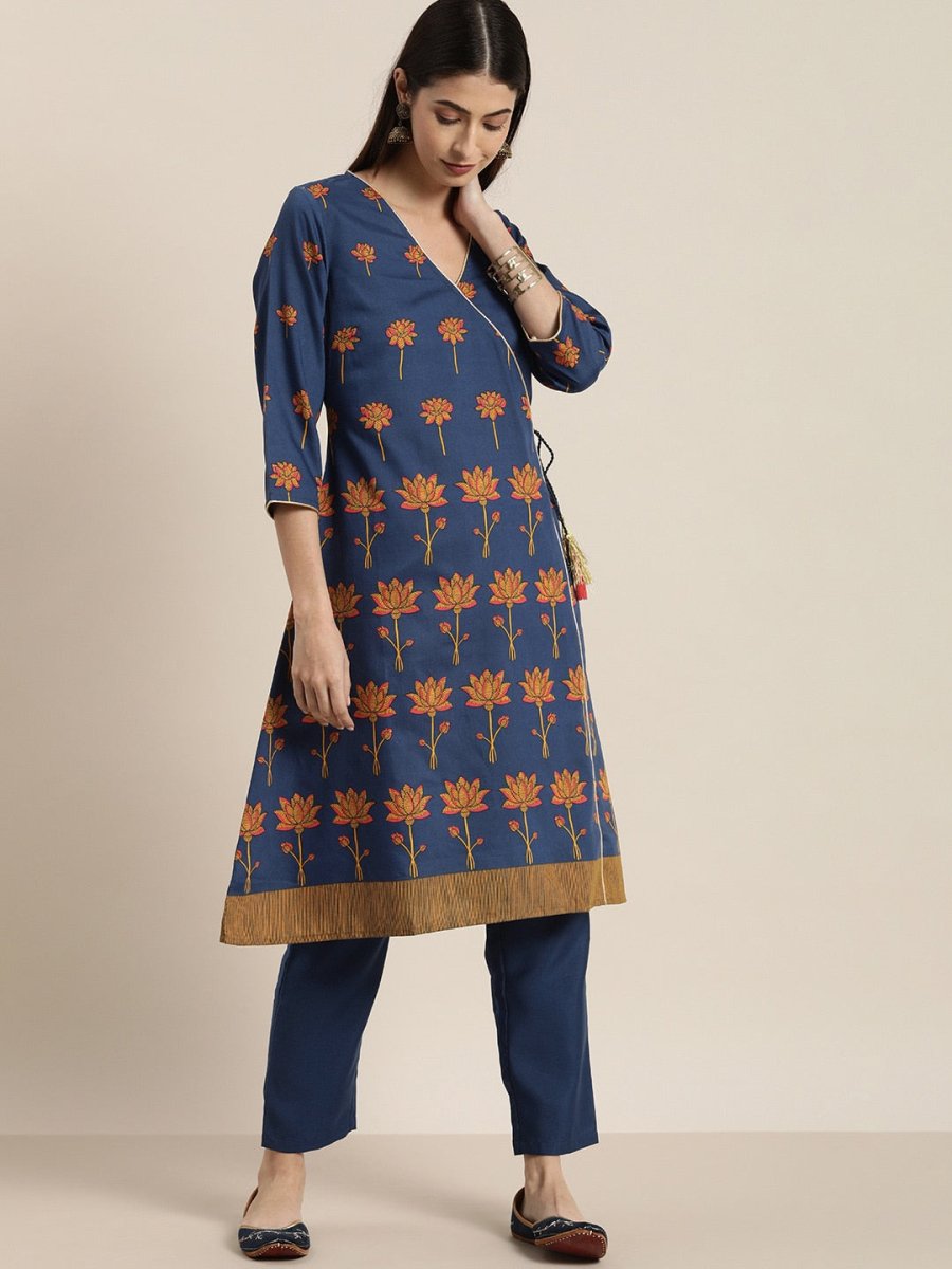 All About You Women Blue Floral Printed Angrakha Kurta with Trousers Product Details Blue printed Kurta with Trousers Kurta design: Floral ...