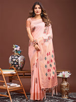 Astita Peach Jacquard Saree with Tassels - Radiate Soft Elegance and Timeless Beauty - Distacart