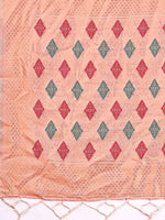 Astita Peach Jacquard Saree with Tassels - Radiate Soft Elegance and Timeless Beauty