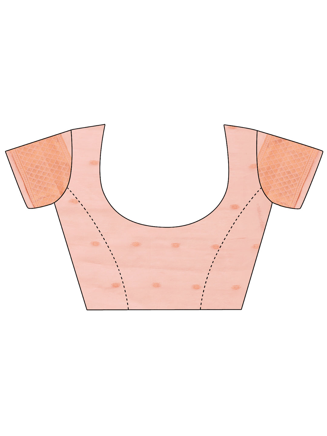 This peach Jacquard saree isn't just a piece of clothing—it's a feeling of warmth, simplicity, and heritage. Whether you're dressing for a quiet family gathering or a vibrant daytime celebration, it brings a gentle glow that reflects your inner serenity and strength. A saree for the soul, wrapped in elegance.