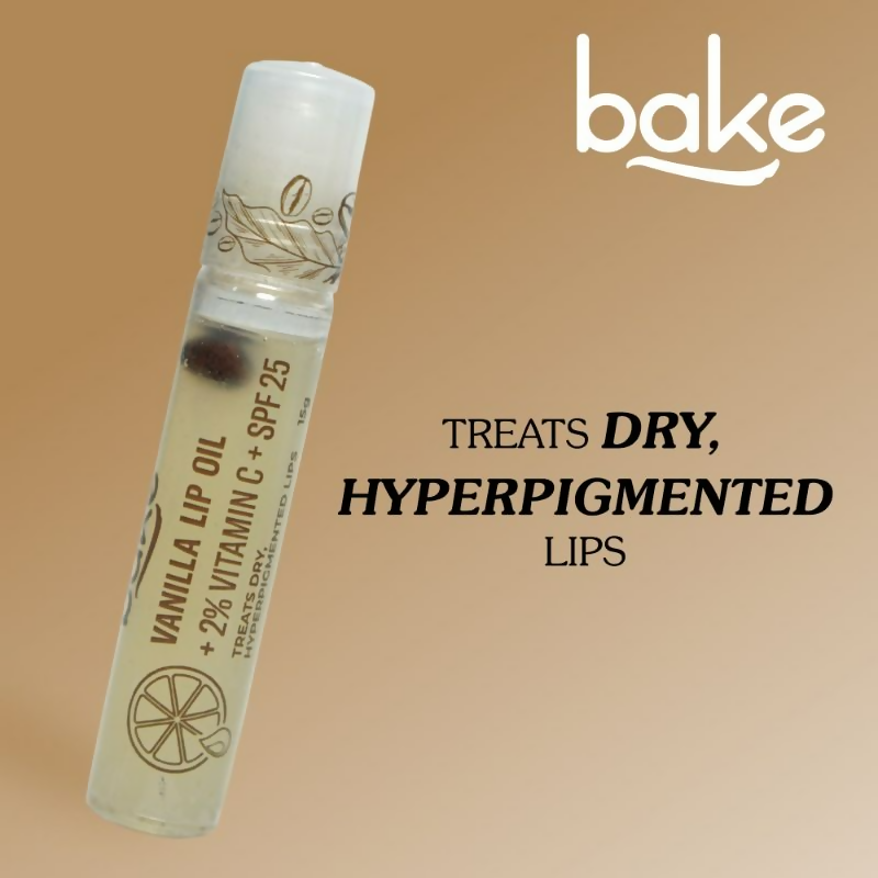 • Discover the BAKE 2% Vitamin C Vanilla Lip Oil with SPF 25, a premium lip care solution designed to elevate your lip care routine to new heights. Enriched with nourishing Shea butter, Cocoa Butter, and potent Vitamin C, this lip oil offers a range of transformative benefits for smooth, supple, and radiant lips.