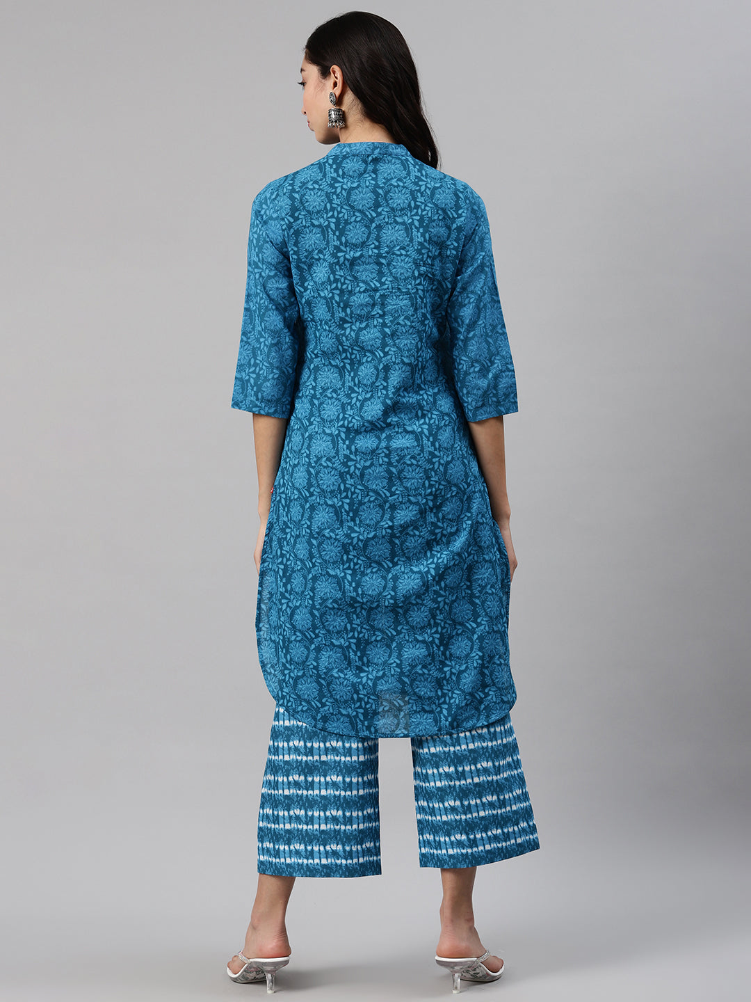Biba Women Blue Printed Kurta with Palazzos Product Details Blue printed kurta with palazzosBlue printed straight knee length kurta, has a manda...