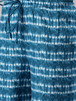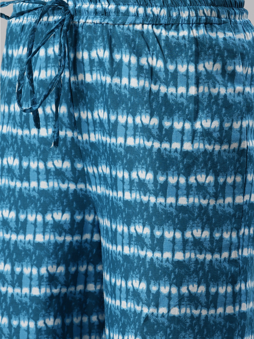 Blue and off-white printed palazzos, has drawstring closure