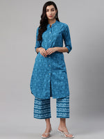 Biba Women Blue Printed Kurta with Palazzos - S