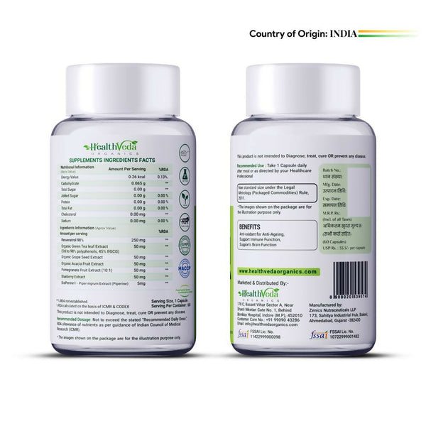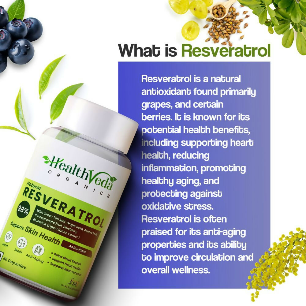 Health Veda Organics Resveratrol 250mg CapsulesHow to Use:Take 1 capsule regularly with water preferably after taking lunch, or as directed by your...