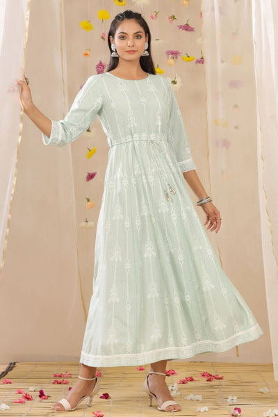 Juniper Womens Mint Rayon Gliter Printed Anarkali Dress - Distacart