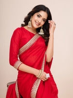 kasee Embroidered Pure Silk Ready to Wear Saree Product Details Design Details Red and gold-toned saree Solid saree with embroidered bord...