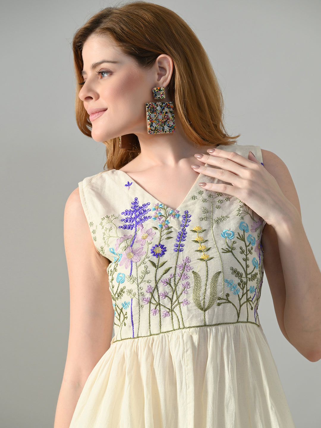 Myshka Women Off White Embroidered Long Kurta With Front Slit TrouserProduct Details: Package Contains : 1 Kurta, 1 Trouser Shape: A-Line Fabric :...