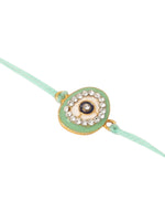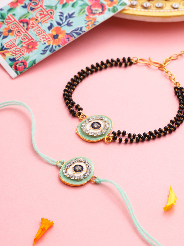 NVR Set of 2 Green Round Shape Artificial Stones Bhaiya Bhabhi Rakhi with Roli Chawal Chandan & Mishri - Free Size