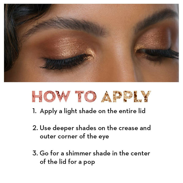 • Start by taking a colour that is a shade or two darker than your skin tone and run it back and forth onto your crease as a transition shade - Start blending at the point where you want the deepest colour, like the outer corner and aim toward the place where you want the lightest colour.