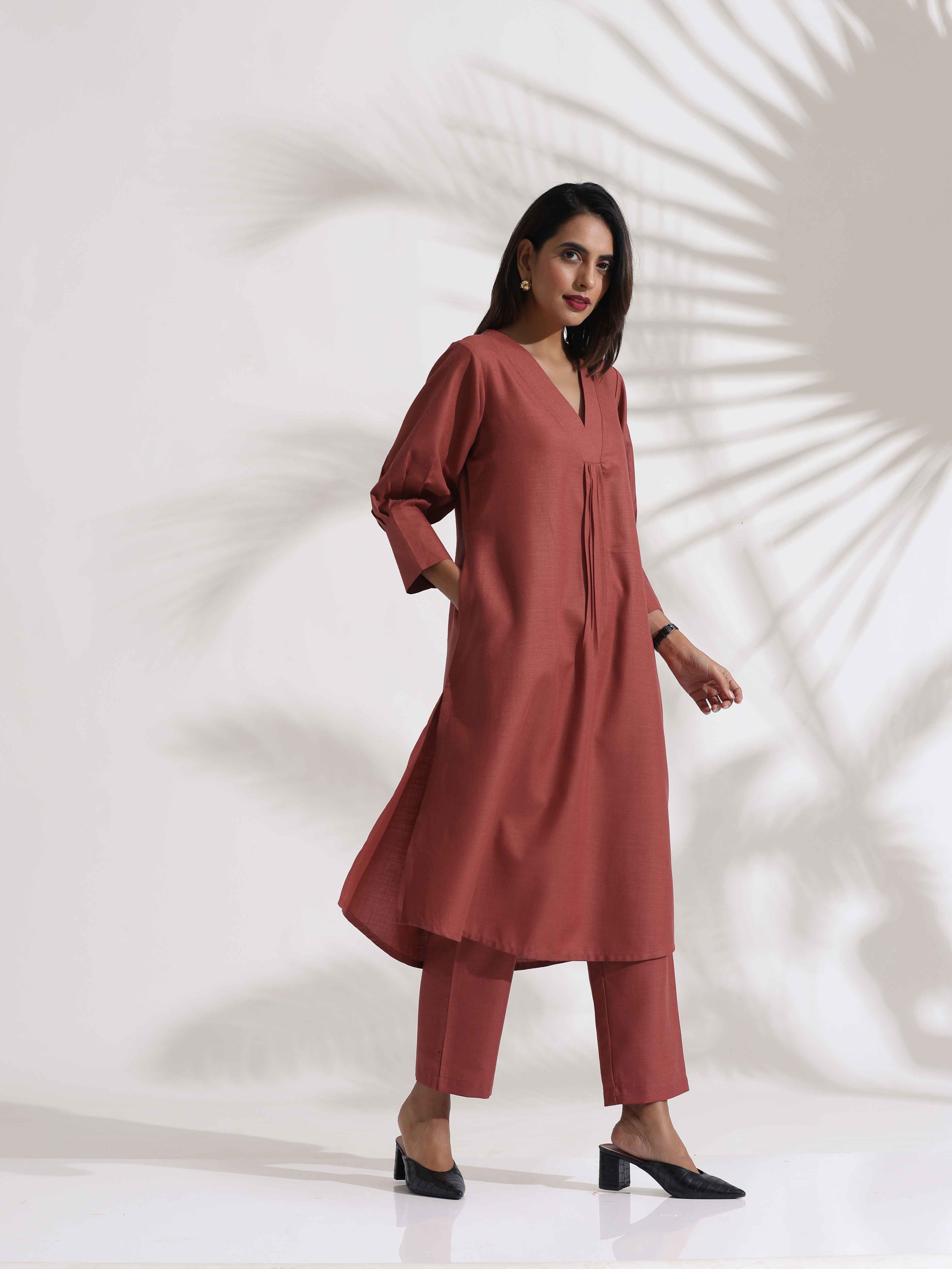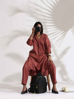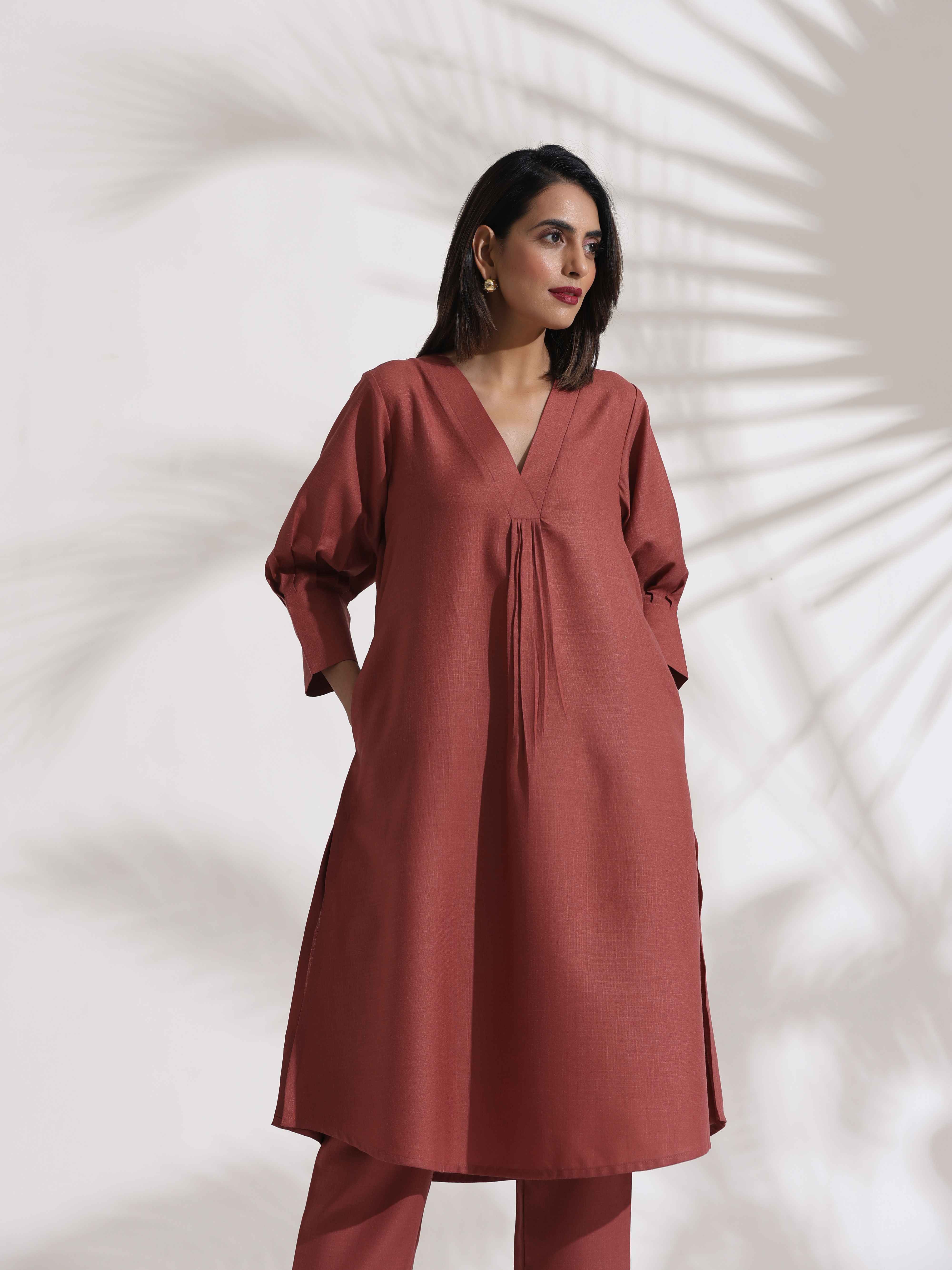 trueBrowns Pink Slub Kurta Set - XS