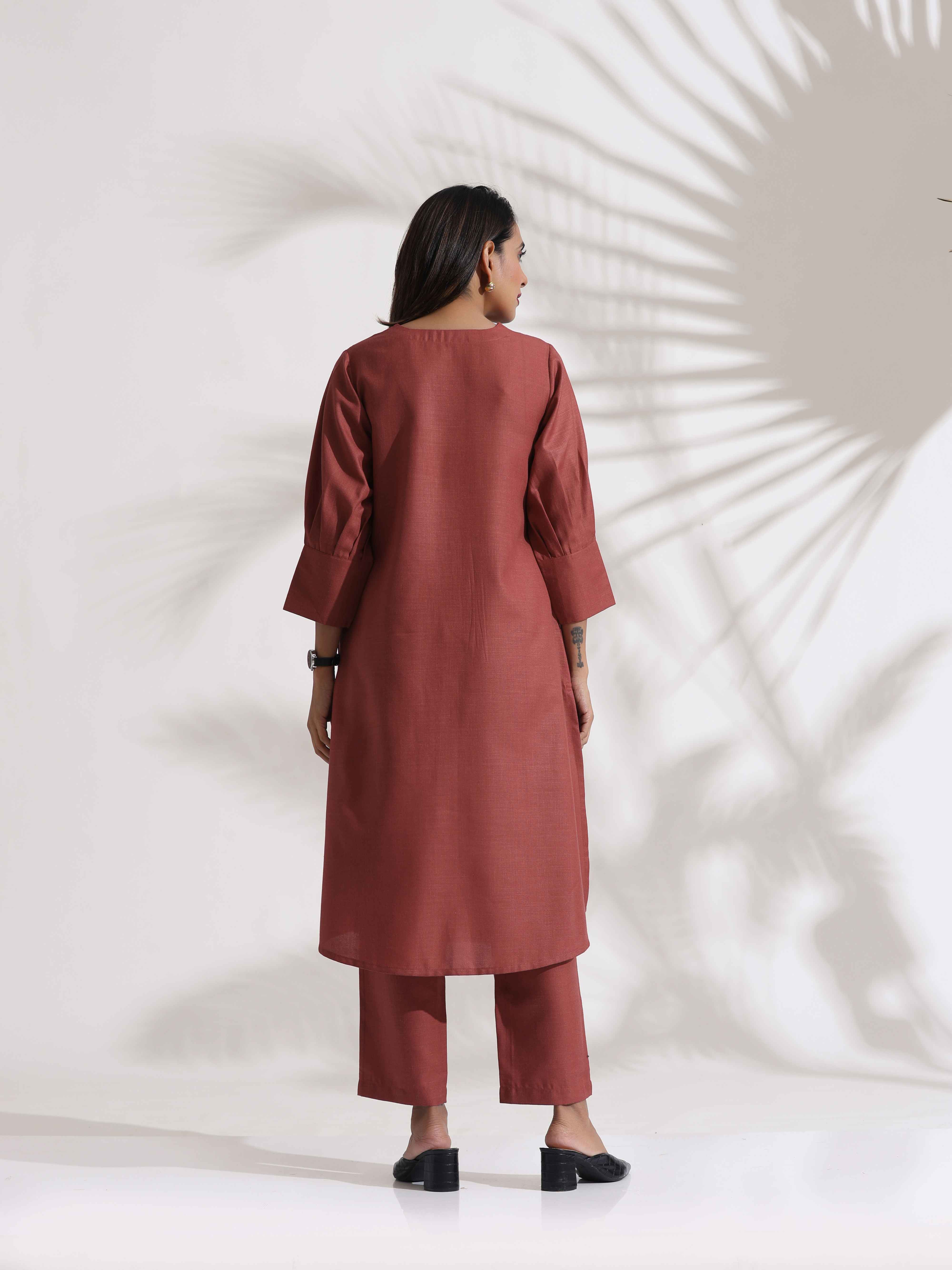trueBrowns Pink Slub Kurta SetDescription Elevate your style with this pink straight kurta, paired with pink pants, it's an ideal blend of elegance...
