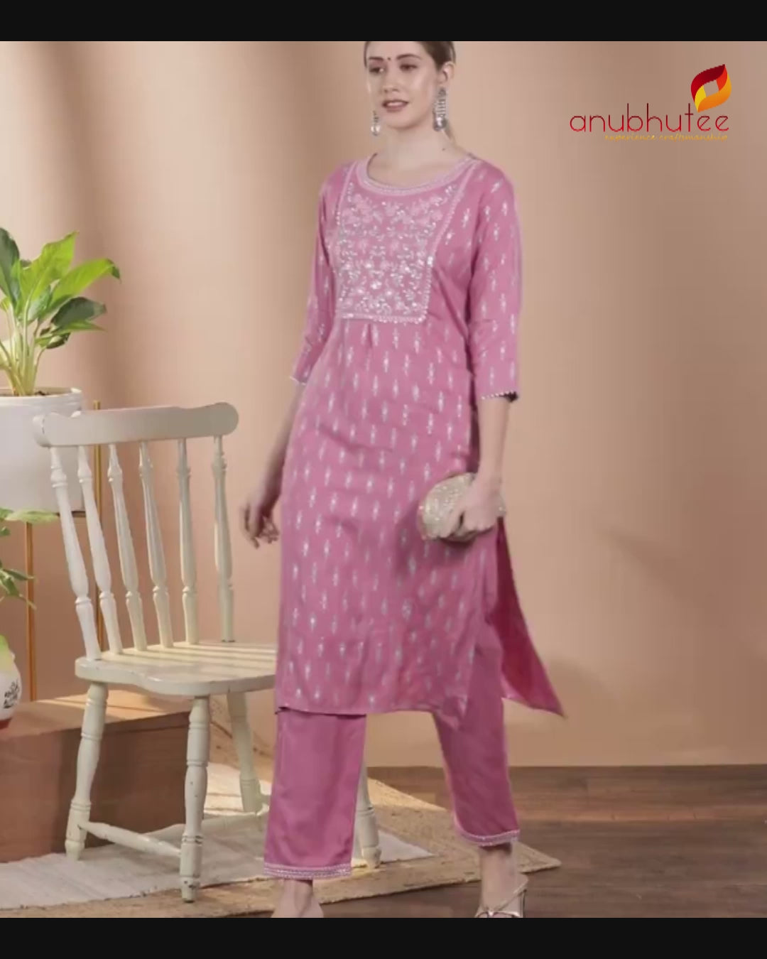 Anubhutee Mauve Ethnic Motifs Yoke Design Regular Mirror Work Kurta with TrousersMauve yoke design Kurta with TrousersKurta design: Ethnic motifs ...