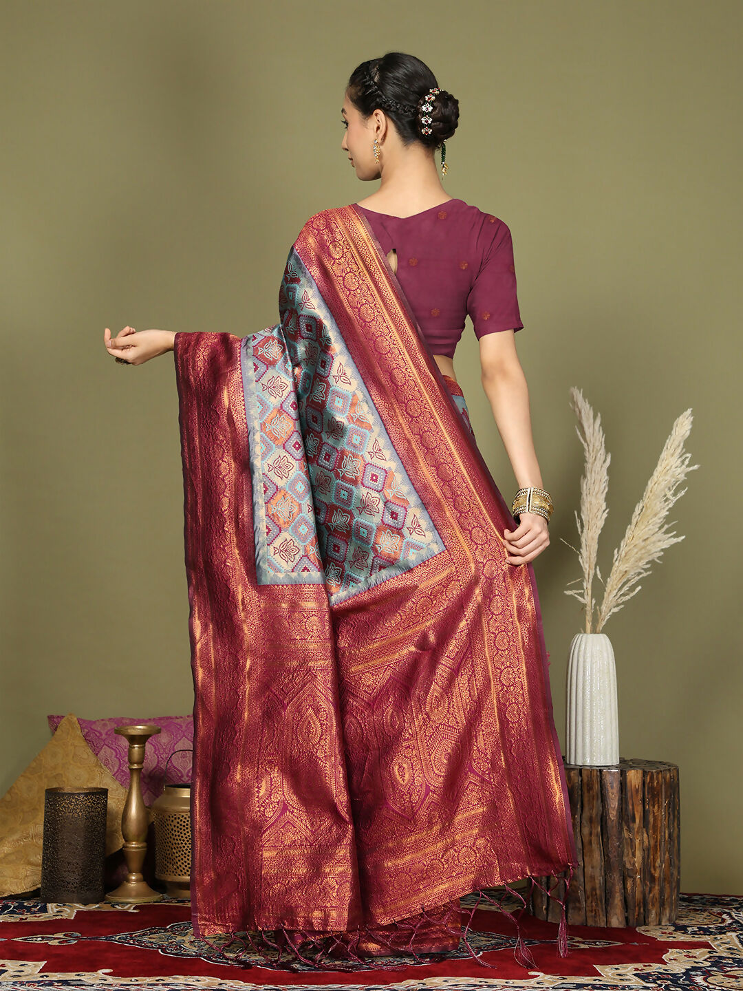 Astita Lichi Silk Teal Saree Saree Color: Teal Saree Fabric: Lichi Silk Blouse Fabric: Lichi Silk Blouse Color: Purple Legal Disclaimer: Produc...
