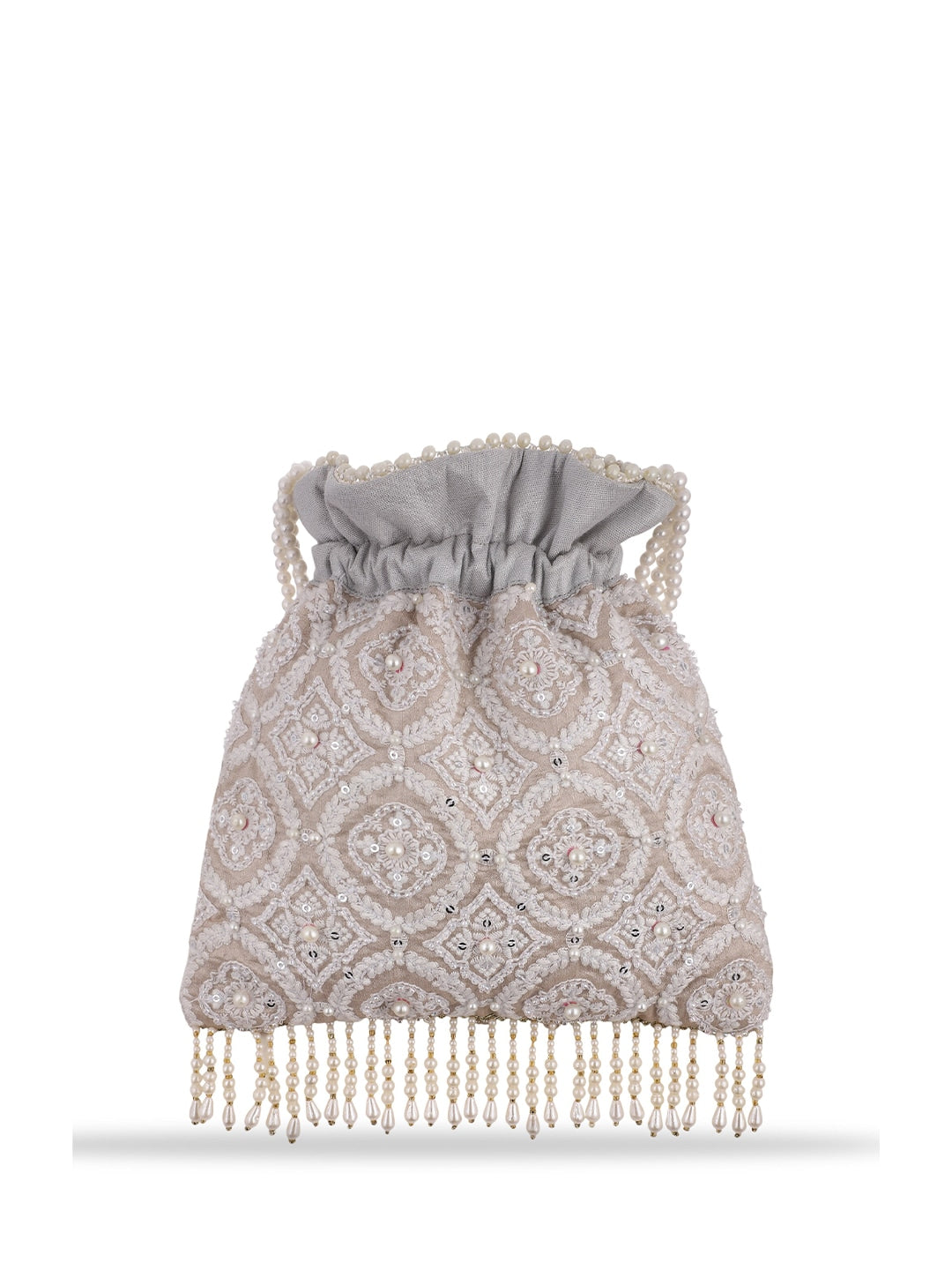 Masq Tan & White Embroidered Potli Clutch - Distacart