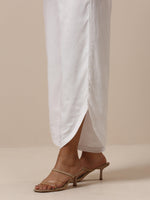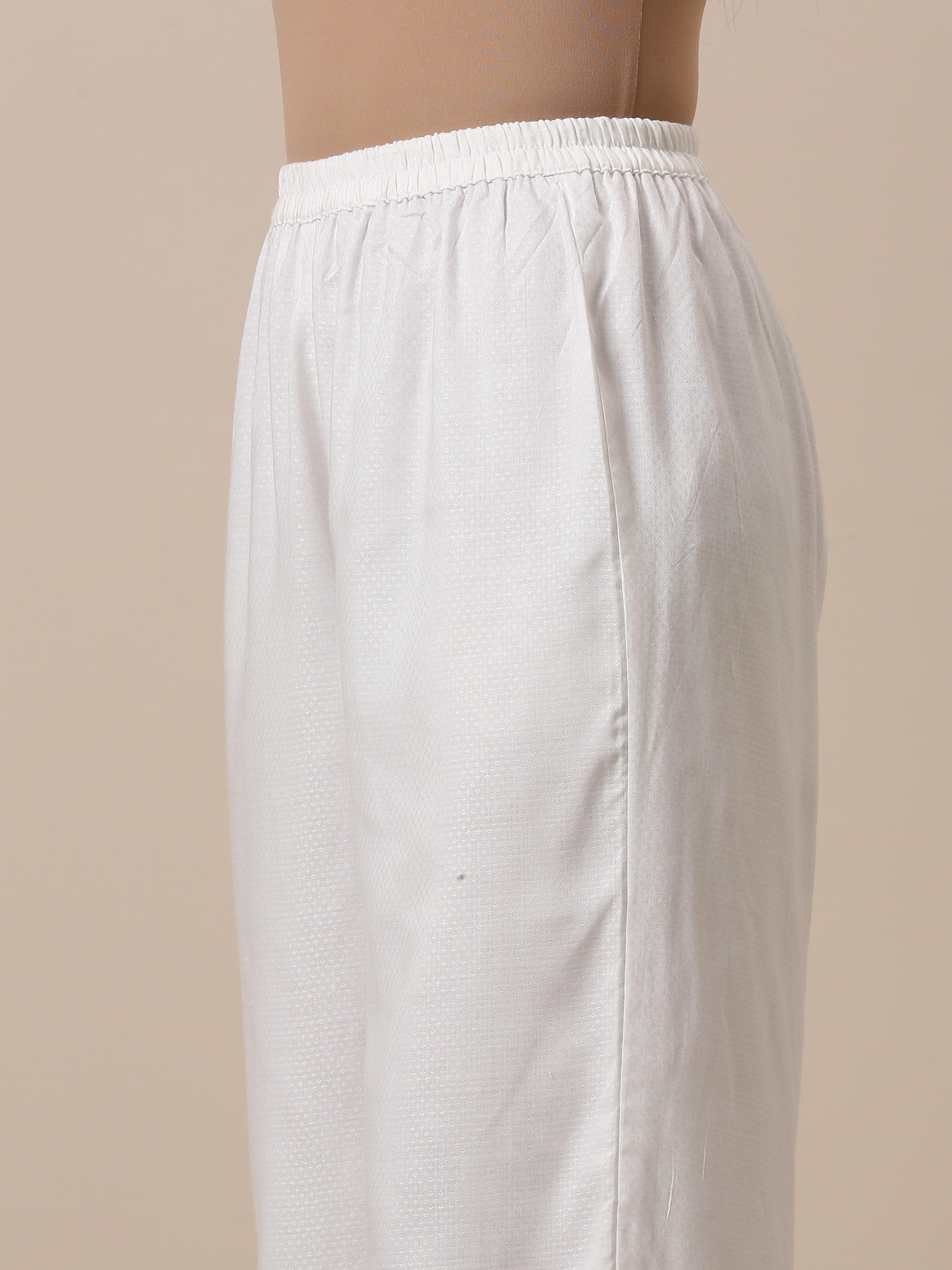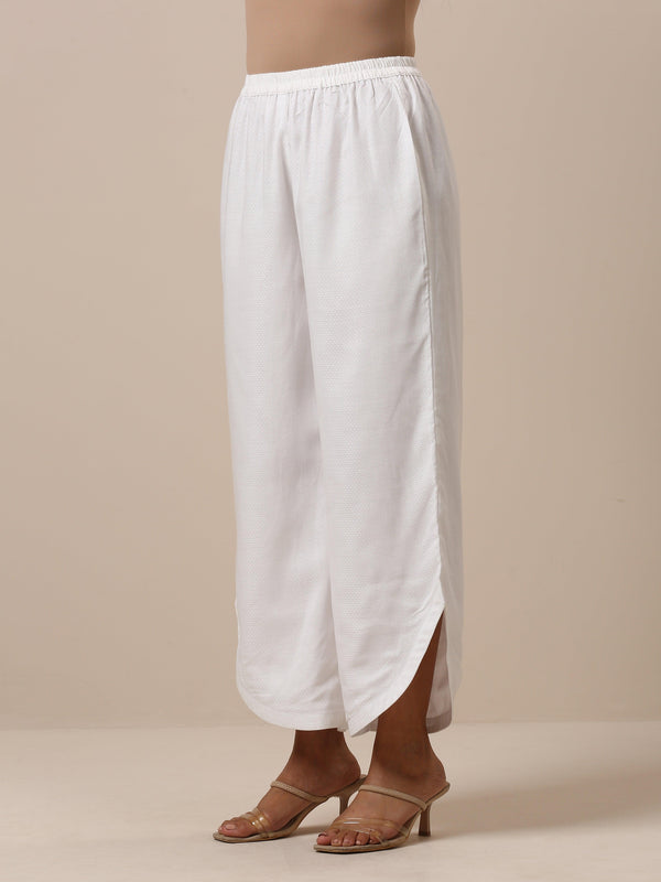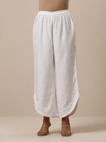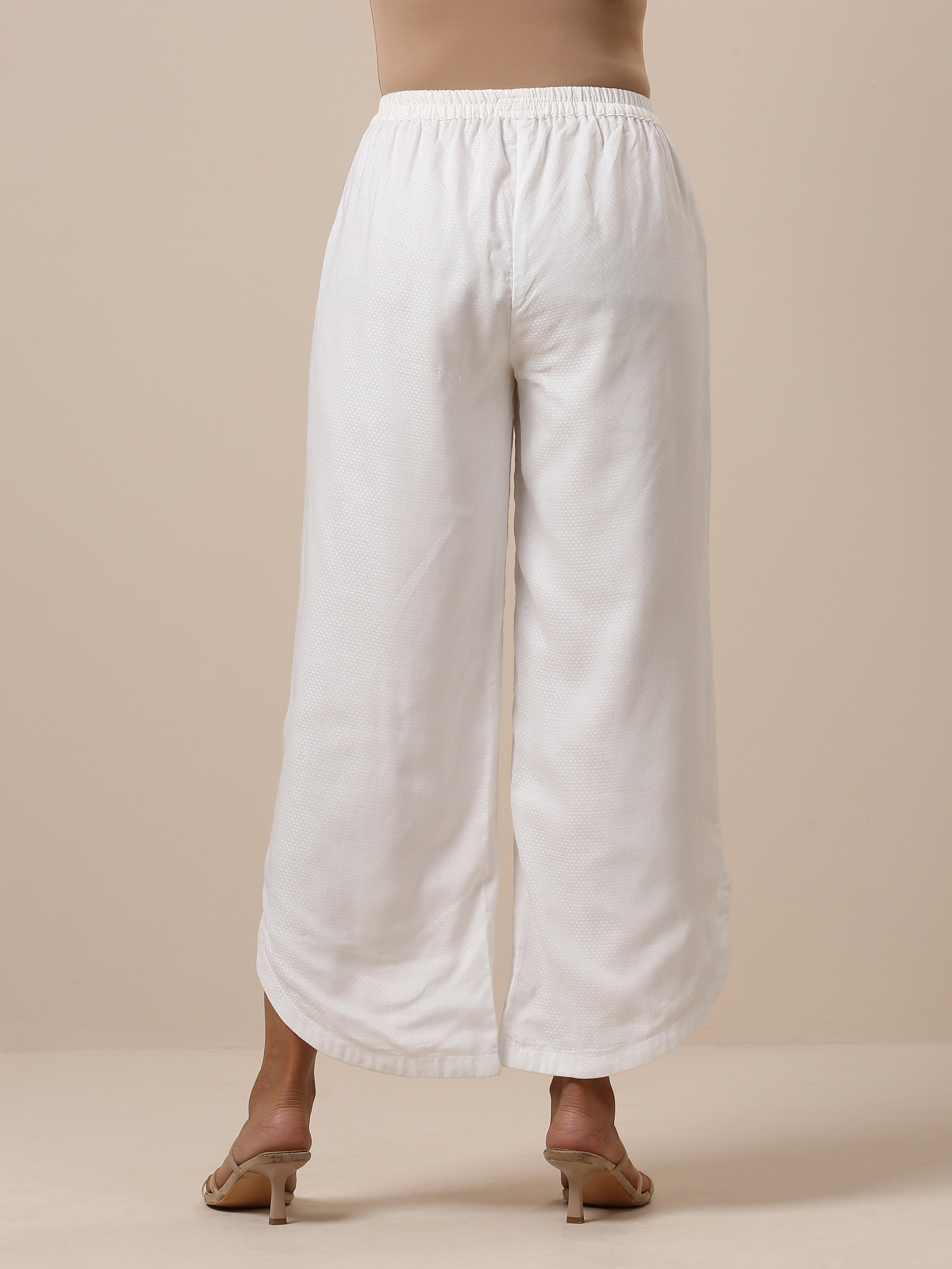 trueBrowns Cotton White Textured Curve PantDescription Cotton pants with curve bottom hem and elastic waist band with lining Soft hand wash only St...