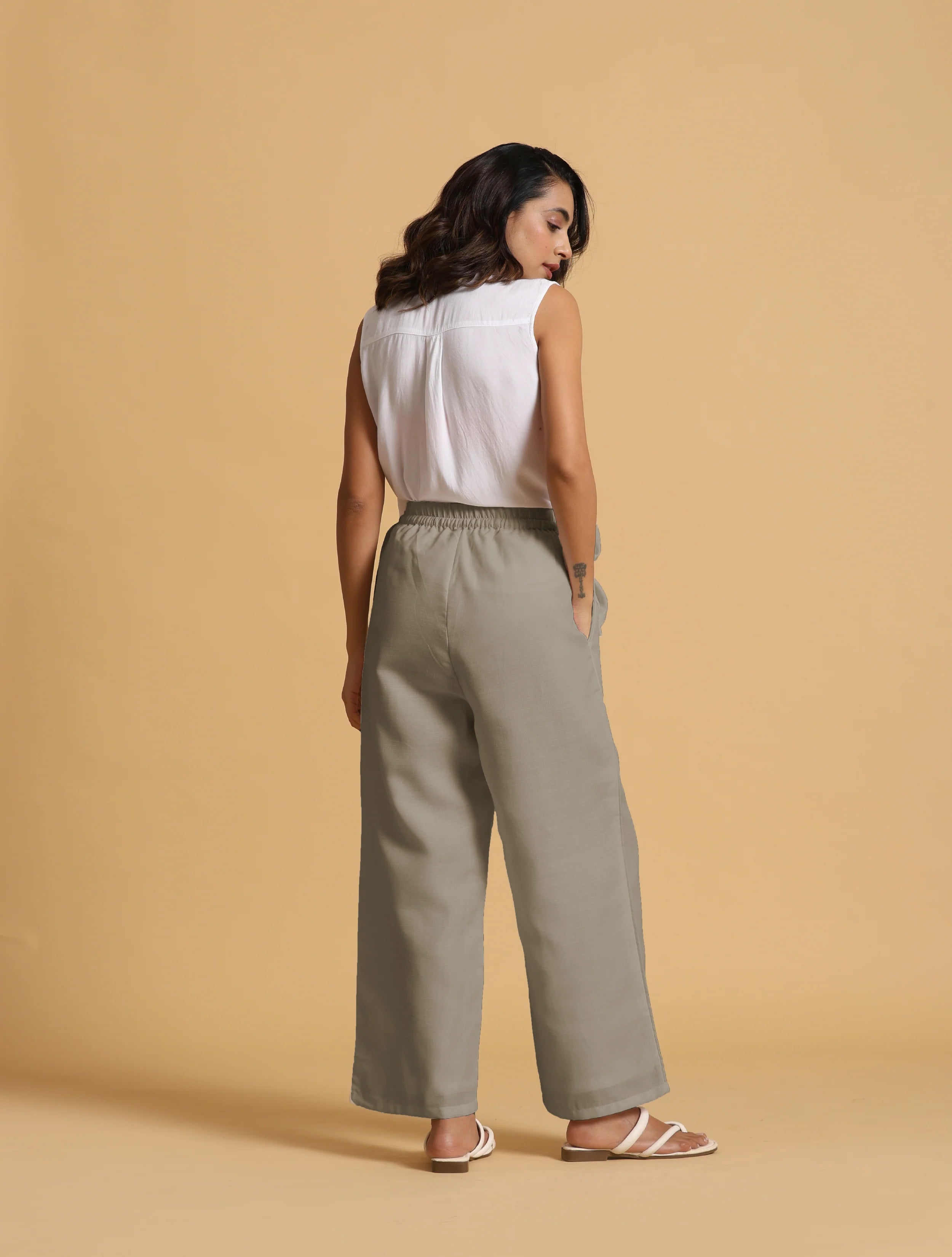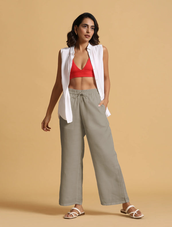 trueBrowns Grey Cotton Blend Elasticated Drawstring Straight PantsDescription Elevate your style with this grey solid bottom. Style it with your ow...