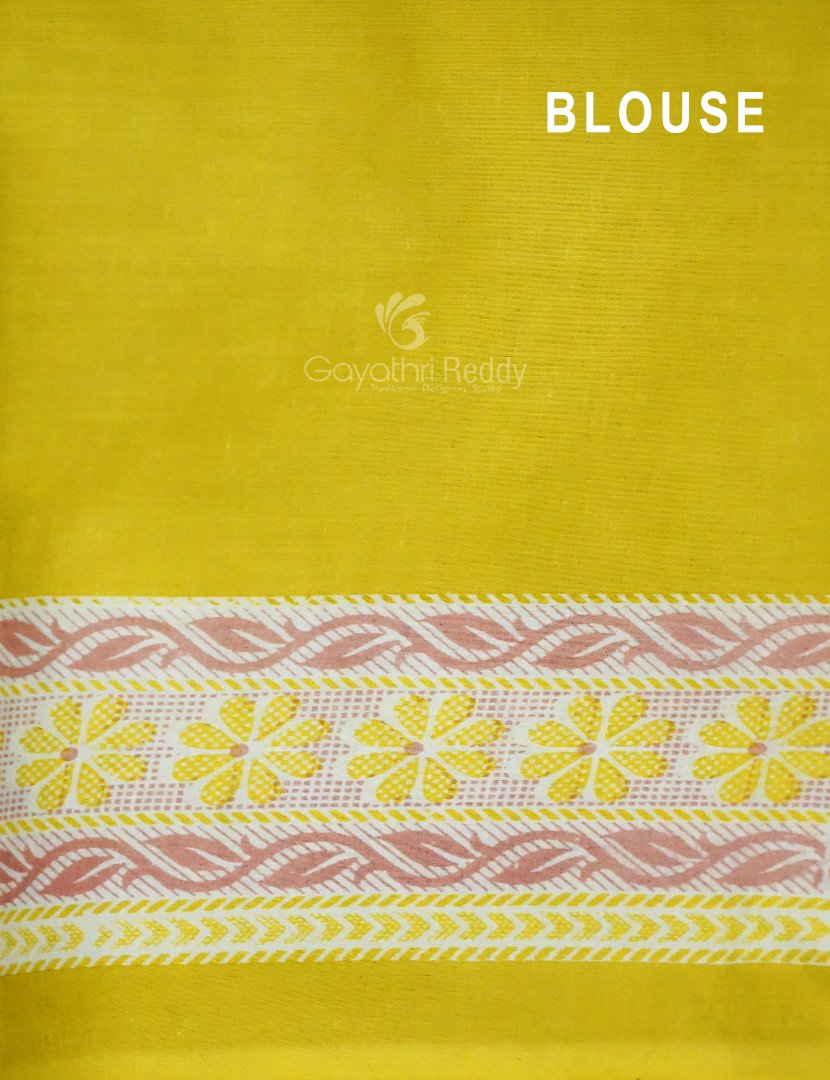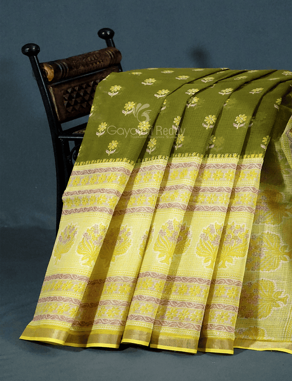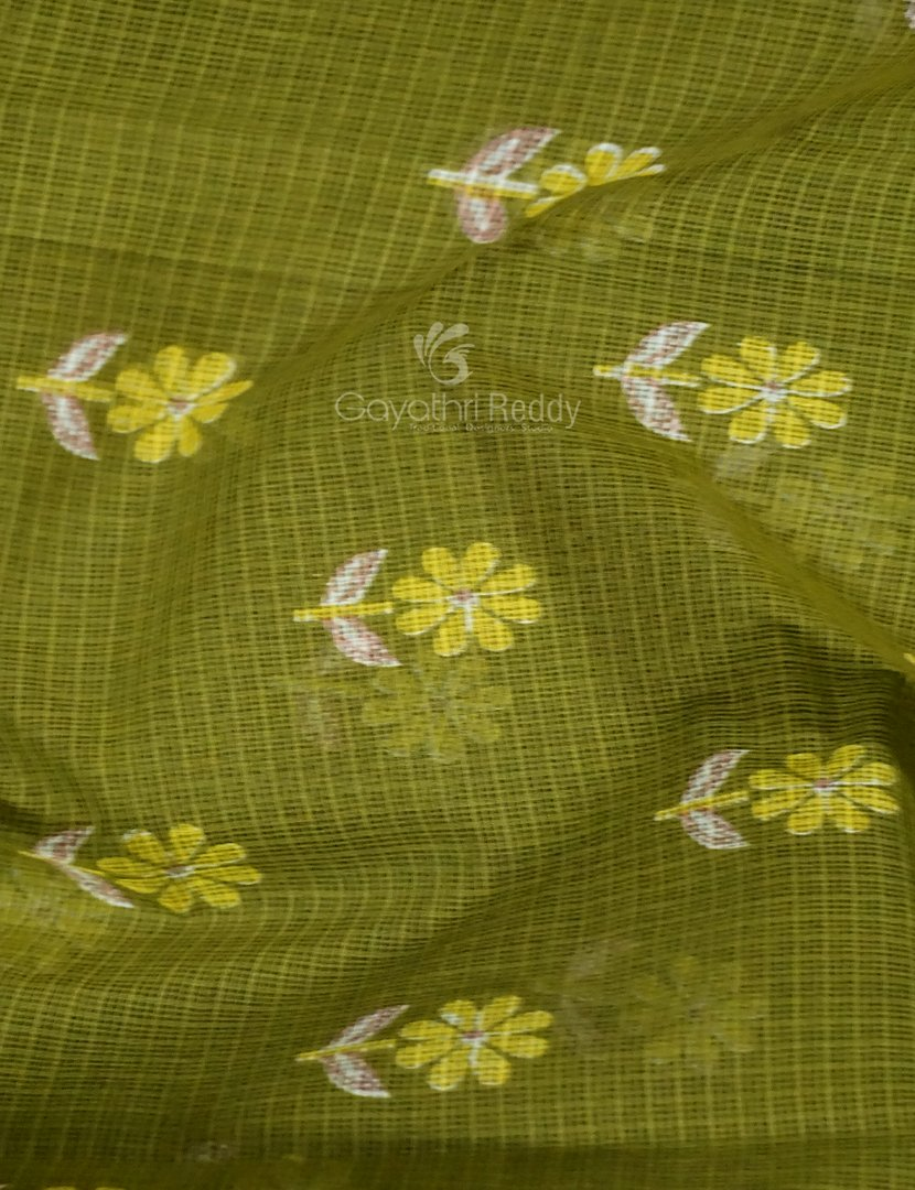 SAREE : Mehndi green and lime green colour saree with block design all over the saree.