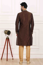 Raivat Ethnic Art Banarasi Silk Thread Work Kurta Pajama In Brown Colour