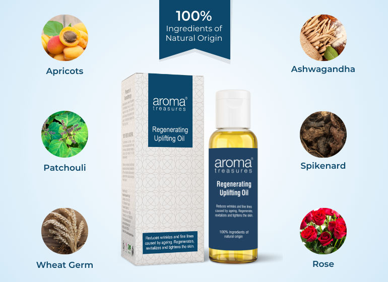 Pure Essential Oils of Patchouli, Rose and Spikenard, blended with Pure Vegetable Oils of Apricot, Ashwagandha and Wheat Germ .