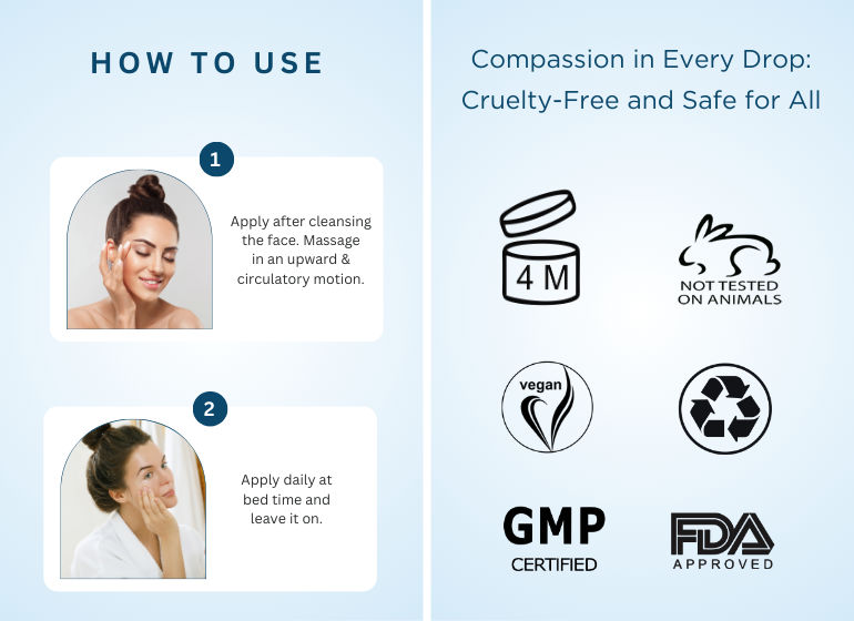 Apply after cleansing the face and massage in an upward and circulatory motion. Apply daily at bed time and leave it on .