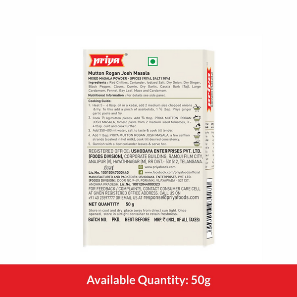 Priya Mutton Rogan Josh MasalaAbout the Products:Priya Mutton Rogan Josh MasalaPriya Mutton Rogan Josh Masala is a great way to make authentic Mutt...