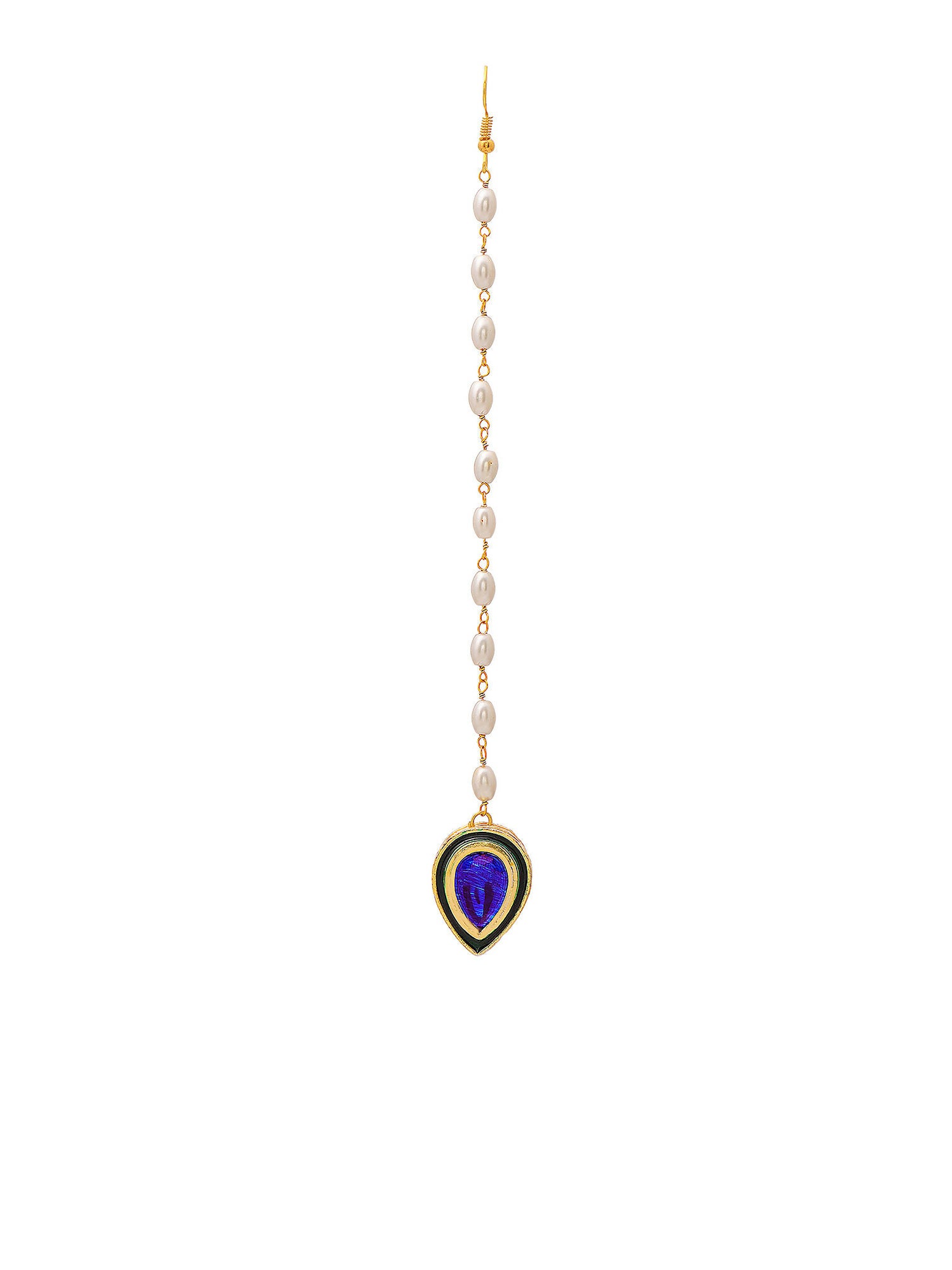 Ruby Raang Blue and Green Meenakari Kundan Maang TikkaProduct Details Color: Blue Type: Maangtika Material (Stone Material): Brass, Kundan, M...