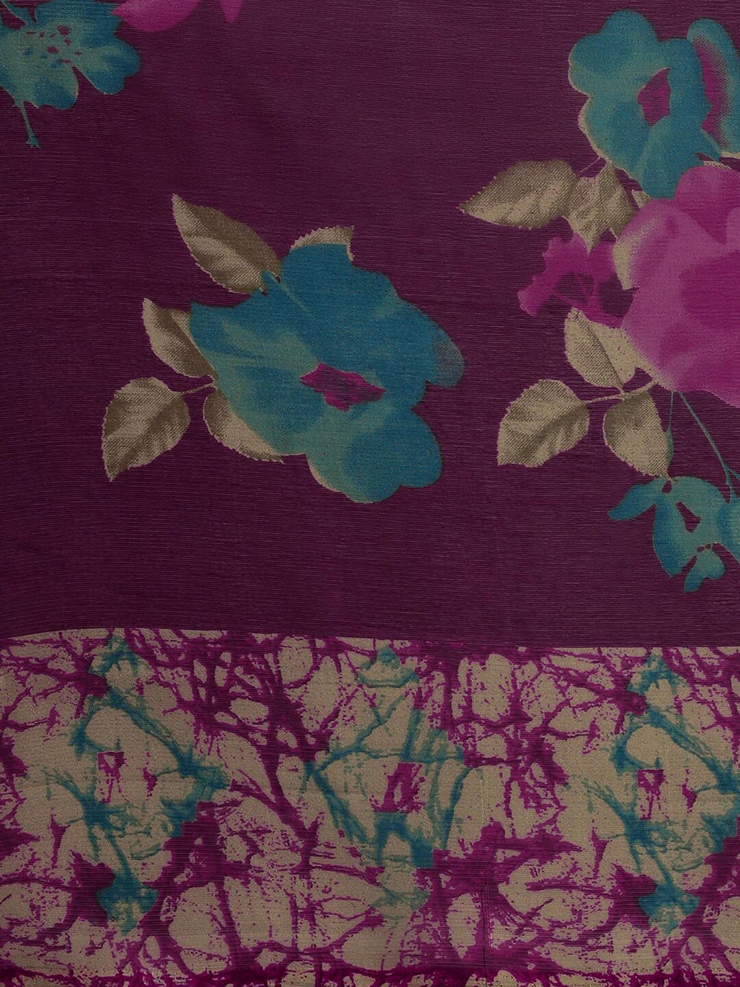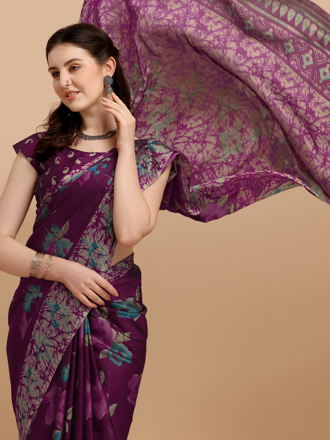 Kalini Purple & Blue Floral Printed Saree - Distacart