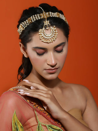 Gold-Plated White Kundan Matha Patti - Ruby Raang - Distacart