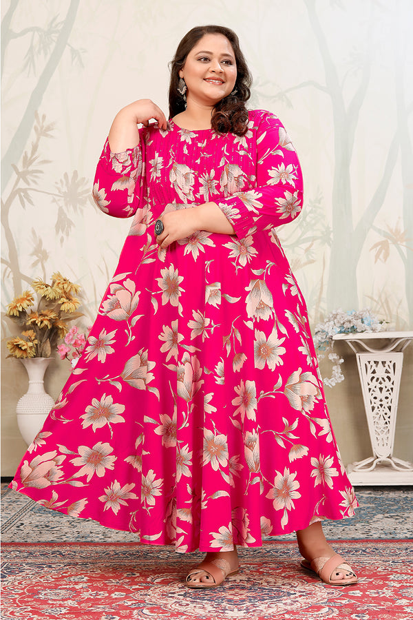 Monjolika Fashion Rani Pink Ceremonial Rayon Designer Kurti - 3XL