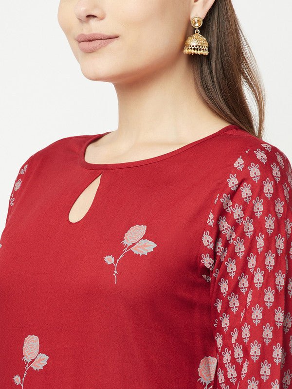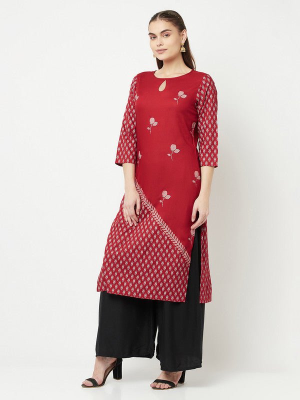 Aniyah Rayon Digital Screen Print Maroon Straight Kurta - S