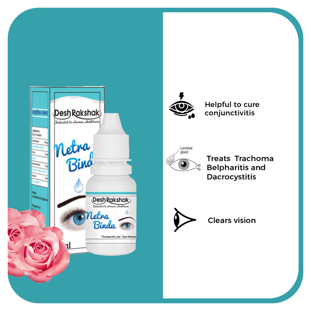 Desh Rakshak Netra Bindu Key Benefits- Helpful to cure conjunctivitisCures styeTreats  Trachoma Belpharitis and DacryocystitisClears vision Key Ing...
