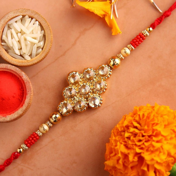 Kundan Rakhi With Dry Fruits & Besan Laddoos - Combo