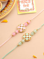 NVR Men Set of 2 Artificial Stones & Beads Floral Design Thread Rakhi with Roli Chawal Chandan & Mishri - Free Size