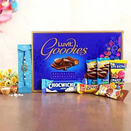 Striking Epoxy Rakhi & LuvIt Goodies Chocolate Box: Combo