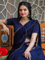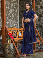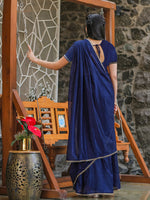 • Navy blue and gold-toned ready to wear saree