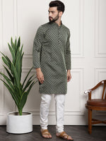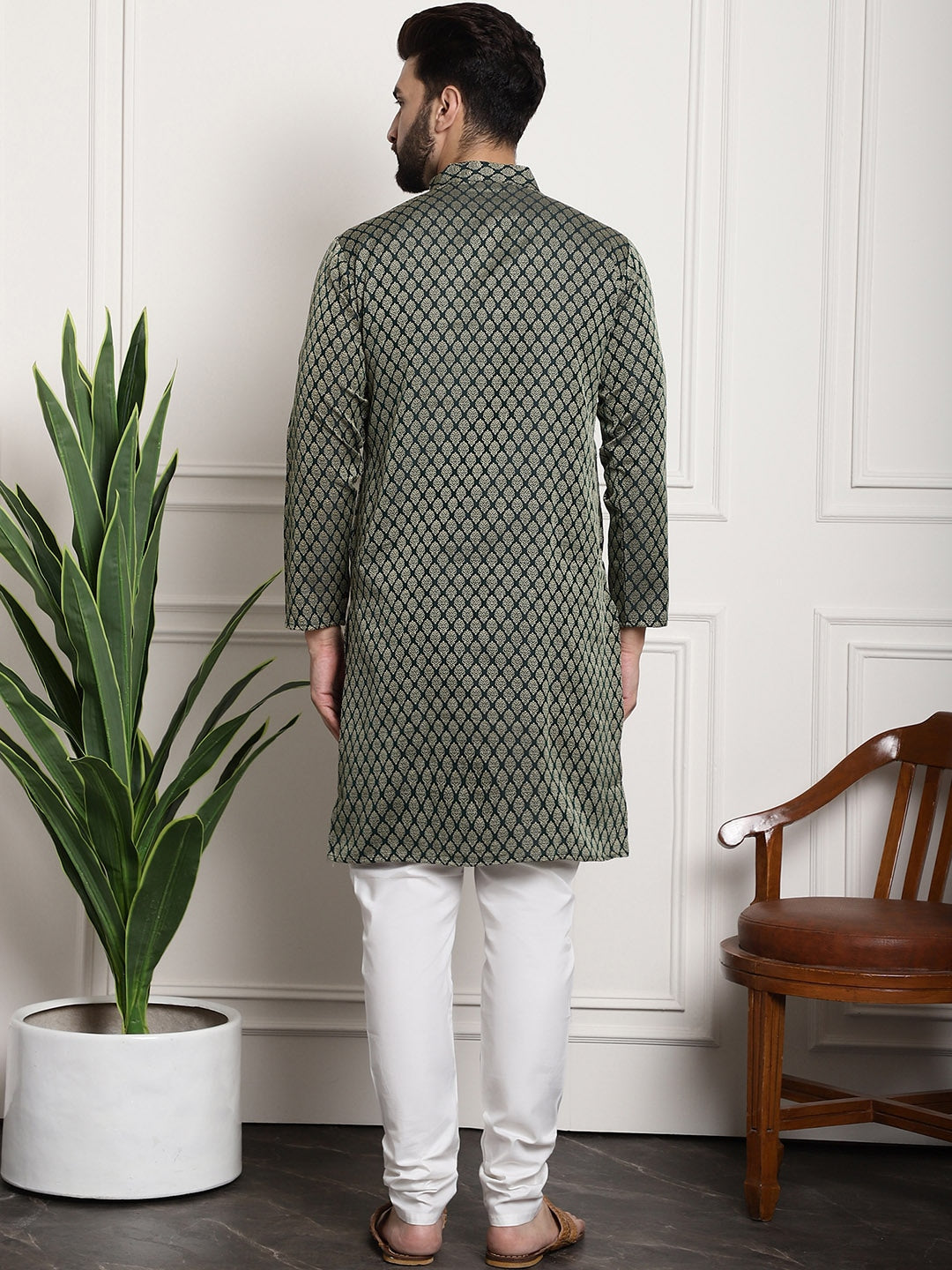 Sojanya Men Green & Off-White Woven Design Kurta with Churidar