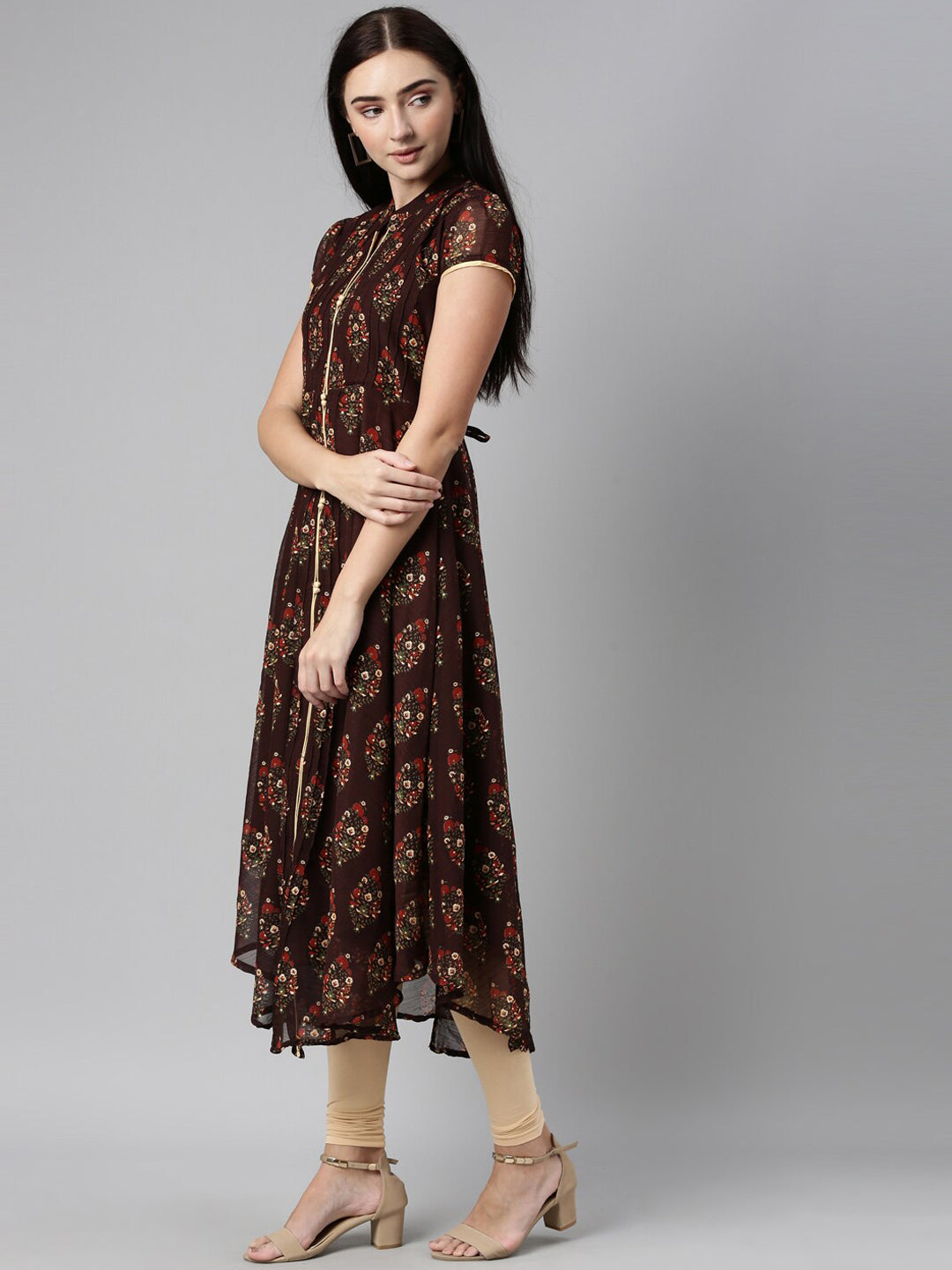 Souchii Women Brown & Red Floral Printed Block Print Kurta - Distacart