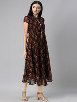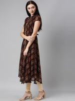 Souchii Women Brown & Red Floral Printed Block Print Kurta - S