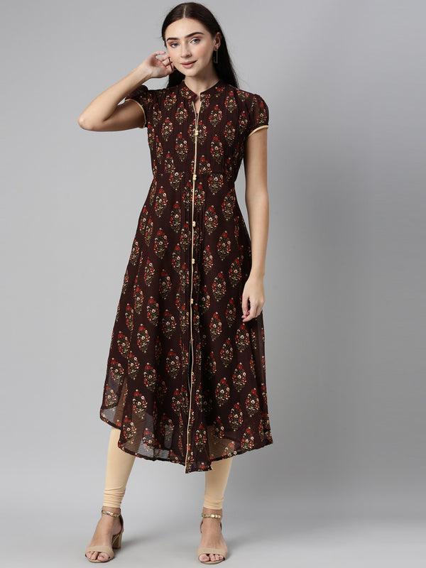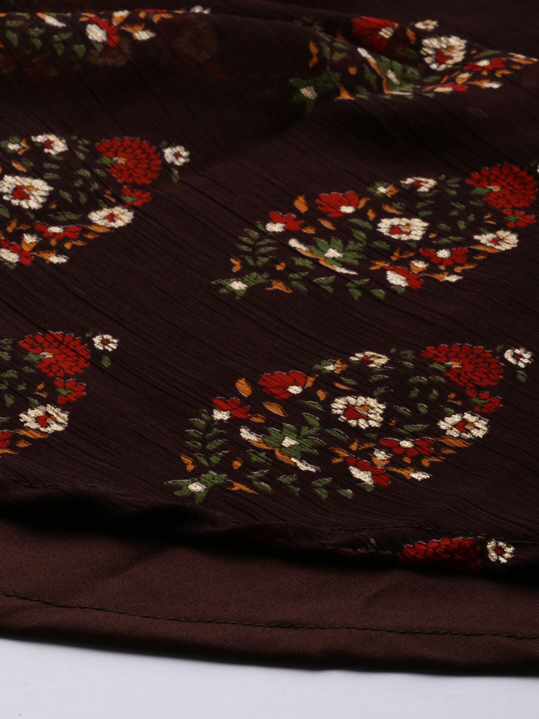 Souchii Women Brown & Red Floral Printed Block Print Kurta