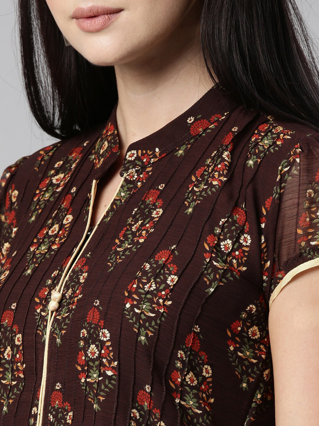 Souchii Women Brown & Red Floral Printed Block Print Kurta Product Details Colour: brown and red Floral printed Round neck Short, cap sleev...