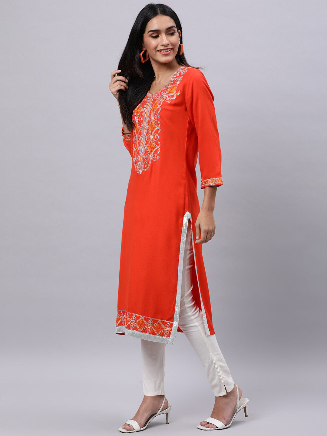 Souchii Women Ethnic Motifs Yoke Design Thread Work Beautiful Kurta Product Details Ethnic motifs yoke design Round neck Three-quarter, regular...