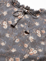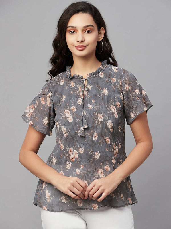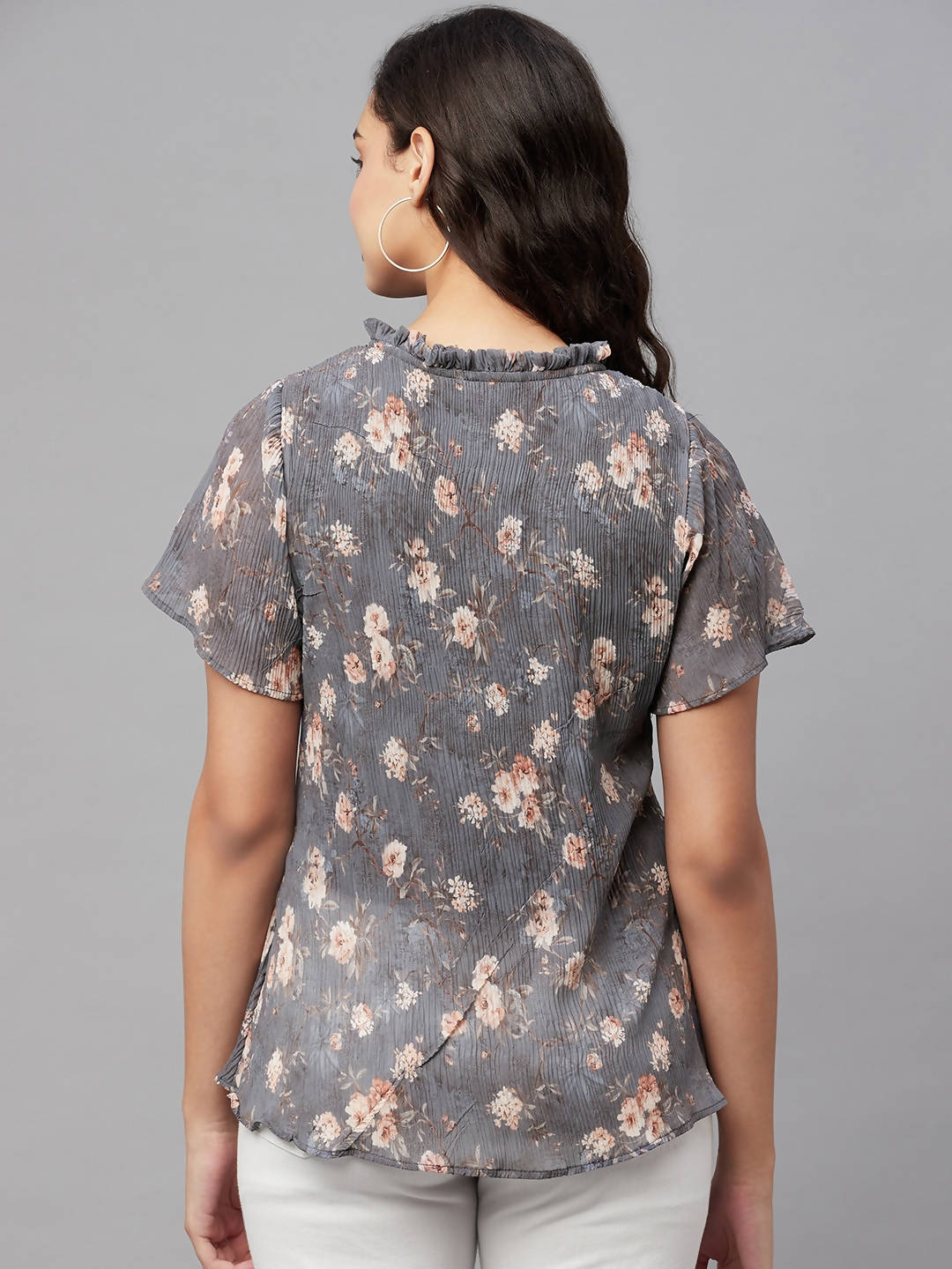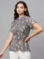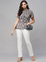 Myshka Grey Printed Half Sleeve Round Neck Top