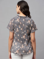 Myshka Grey Printed Half Sleeve Round Neck Top - S