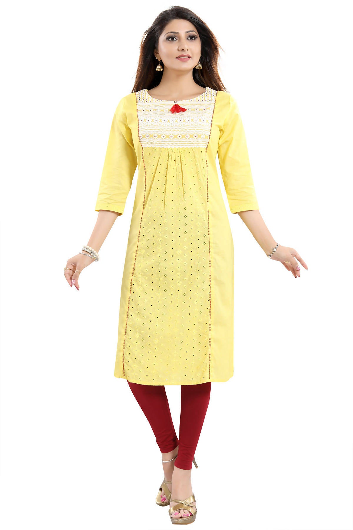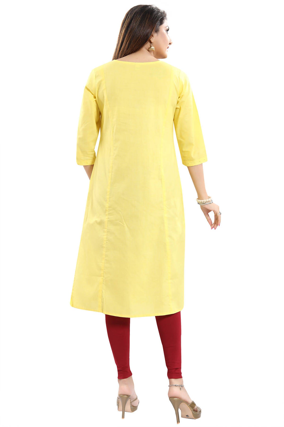 Snehal Creations Vibrant Yellow Cotton Long Chicken Tunic - S