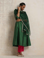 trueBrowns Dark Green Anarkali Kurta Pant Dupatta Set