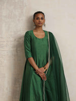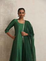 trueBrowns Dark Green Anarkali Kurta Pant Dupatta SetDescription Elevate your style with this gold silk blend kurta paired perfectly with gold silk...