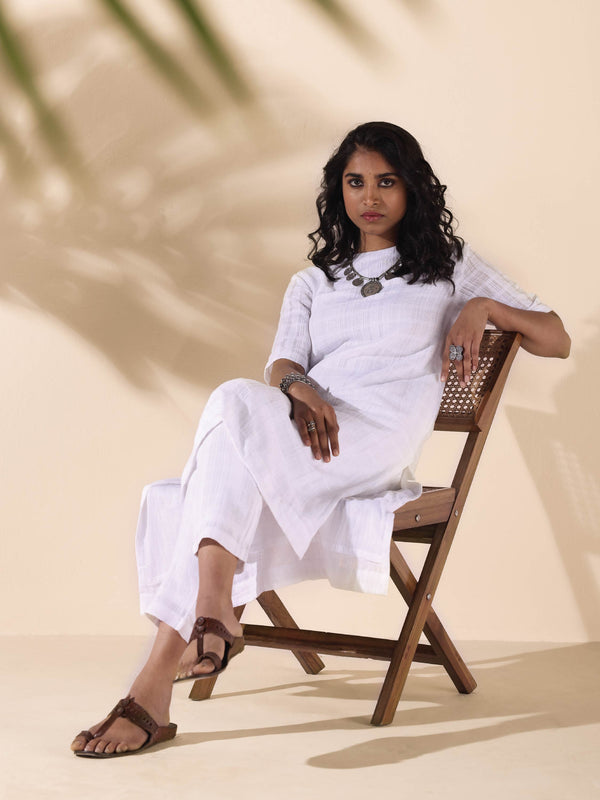 trueBrowns White Cotton Dobby Kurta Pant Set