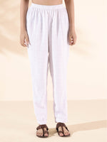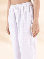 trueBrowns White Cotton Dobby Kurta Pant Set - 2XS